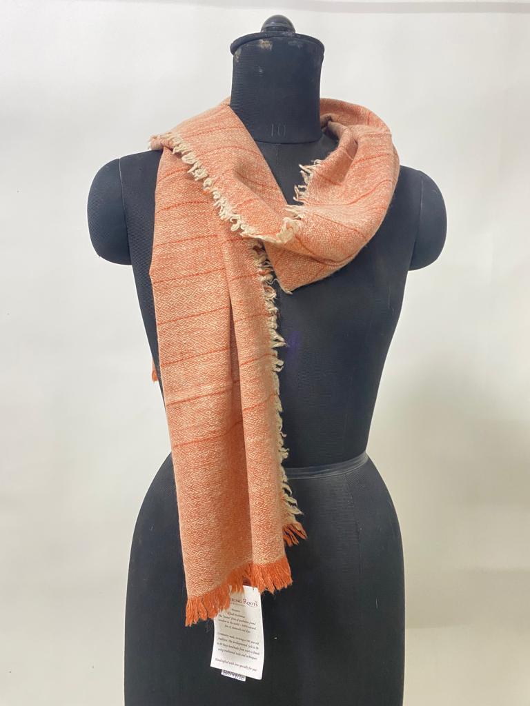 • hand carded, hand spun, and hand woven by women and weavers from the lower Himalayan region of India