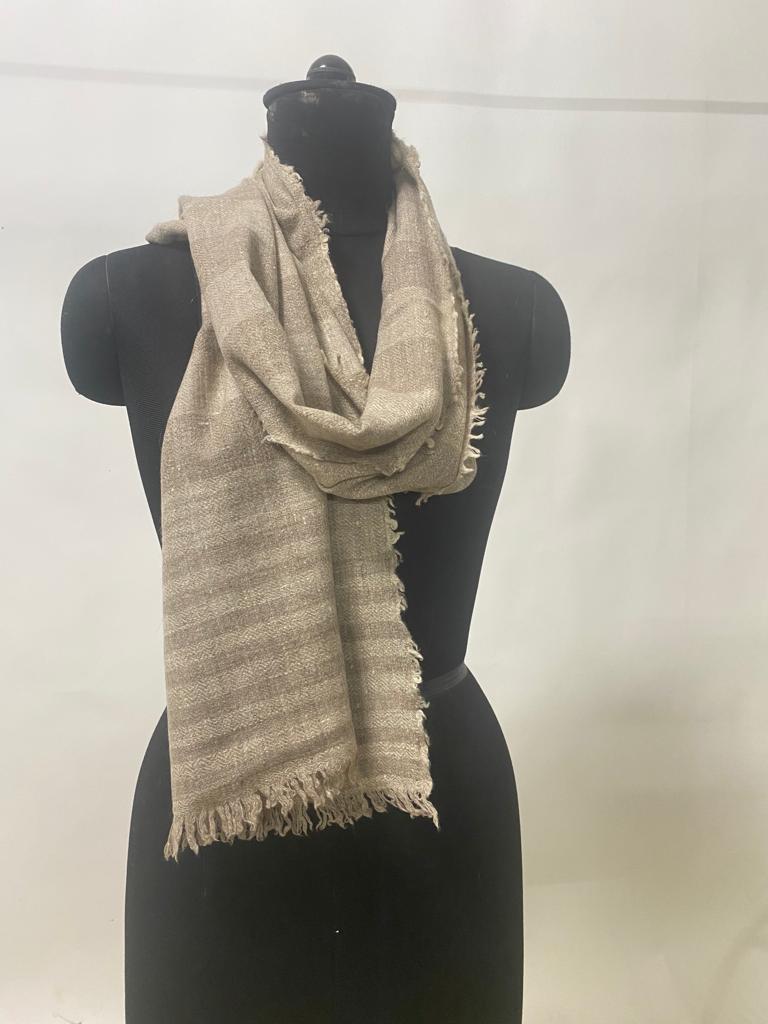 • hand carded, hand spun, and hand woven by women and weavers from the lower Himalayan region of India