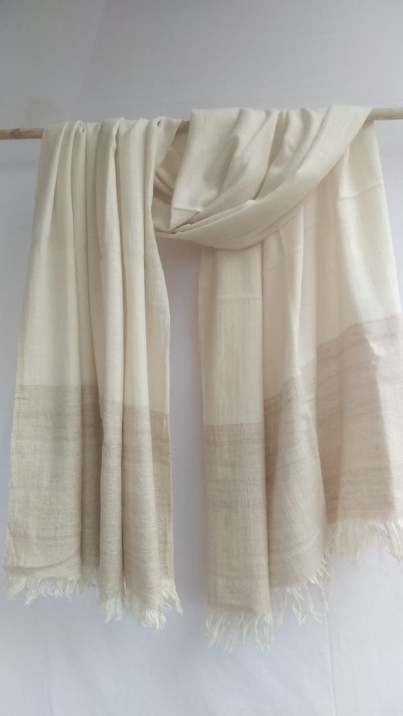 • hand carded, hand spun, and hand woven by women and weavers from the lower Himalayan region of India