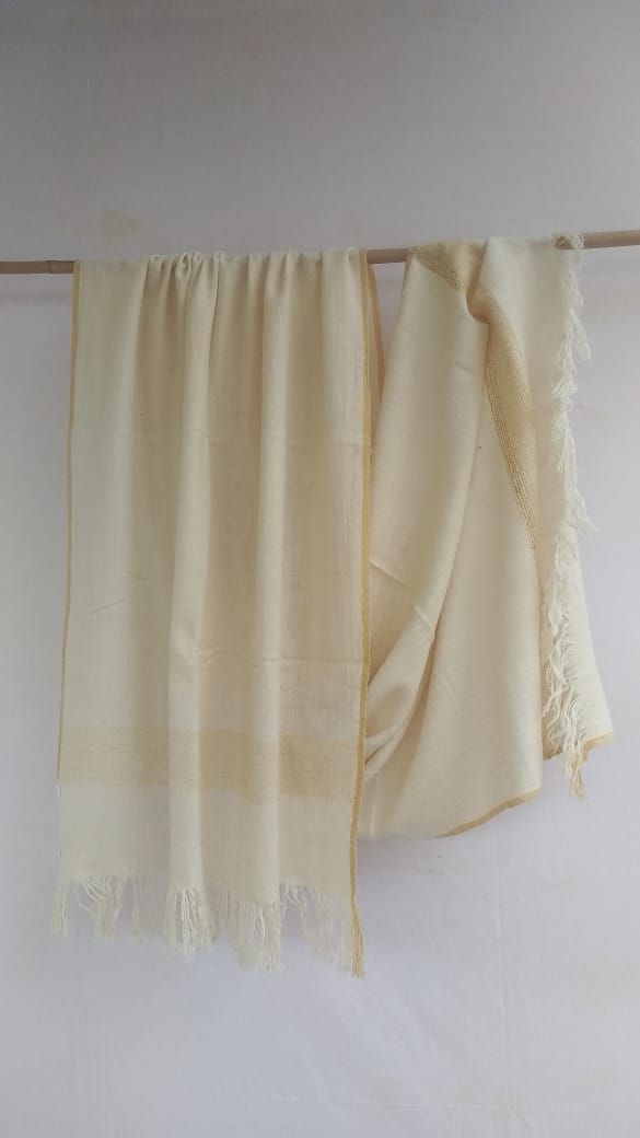 • hand carded, hand spun, and hand woven by women and weavers from the lower Himalayan region of India